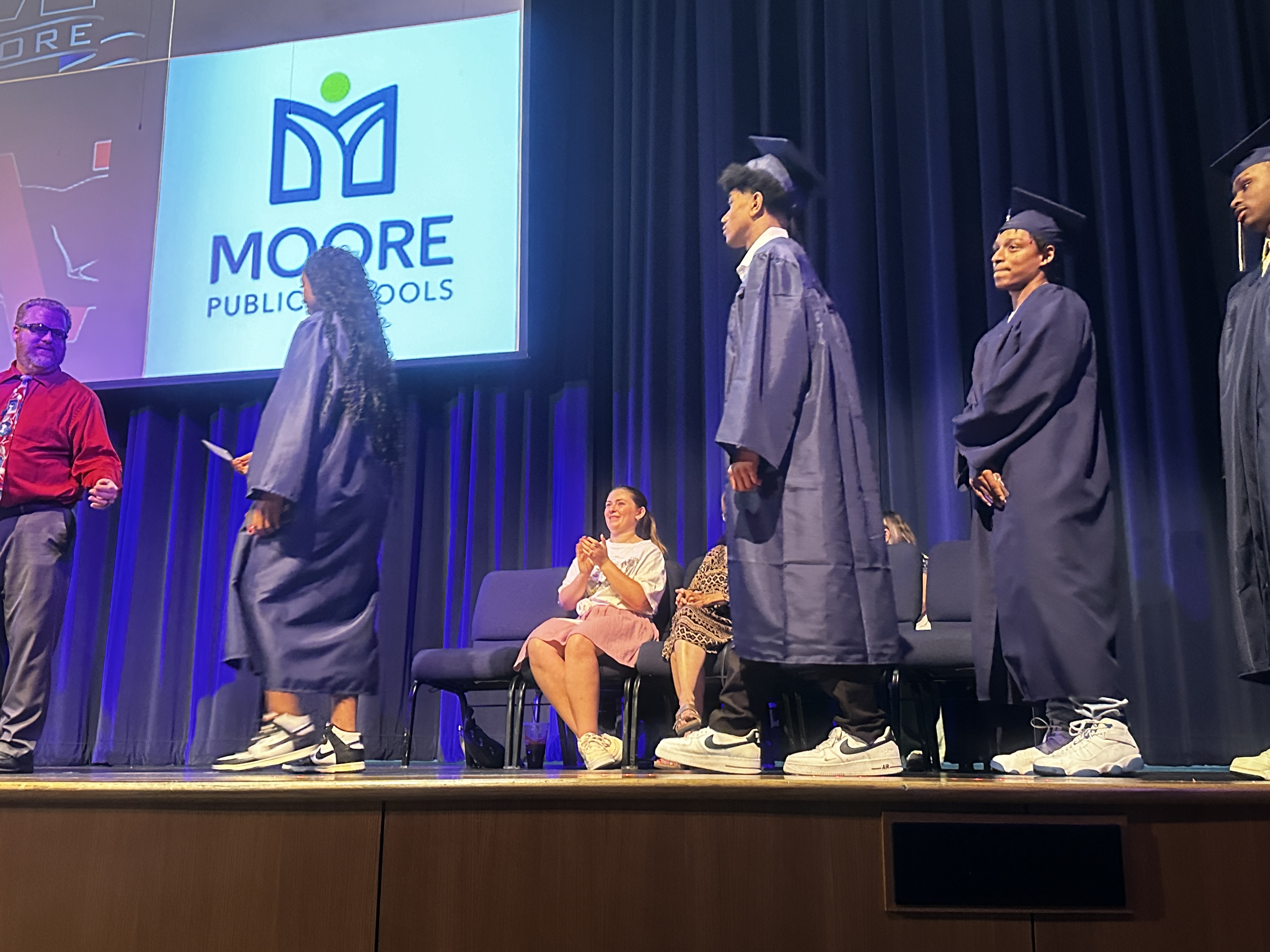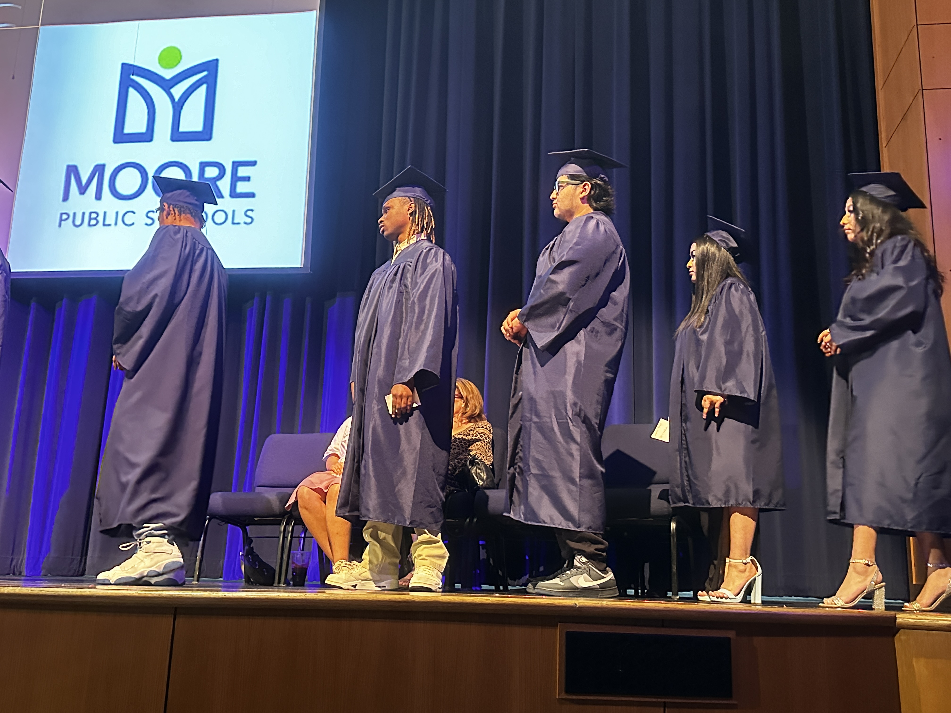 Moore Public Schools had 59 students from the Night School program walk the stage before their families and friends last night. Principal Philip Trimmer and Co-Principal Lisa Smith shared lessons of wisdom to encourage them as they begin a new chapter. They also told the new graduates that they have already done hard things to reach the finish line for school, and that life would be similar in that they'll need to continue the mindset of working hard for the life they want.