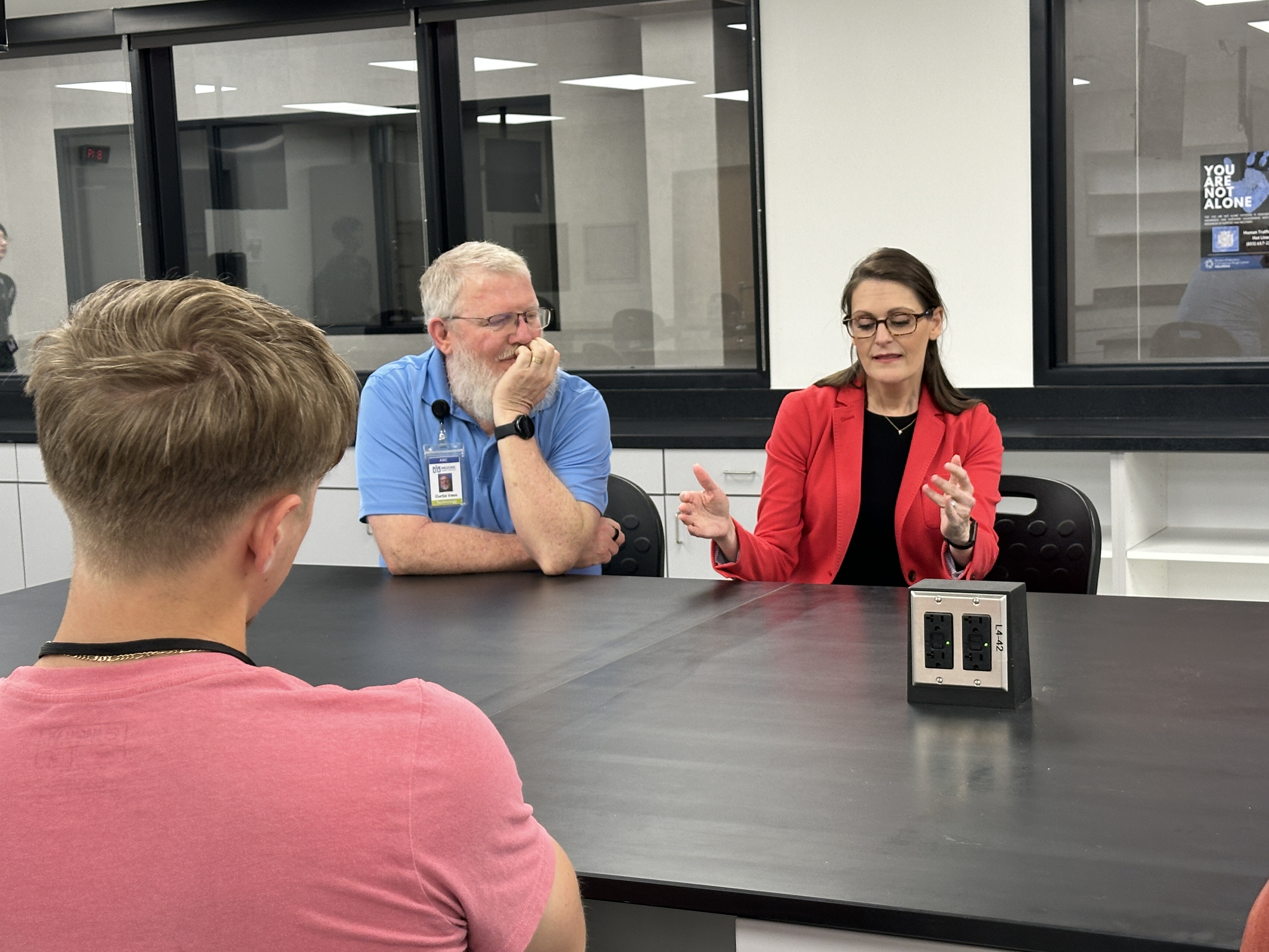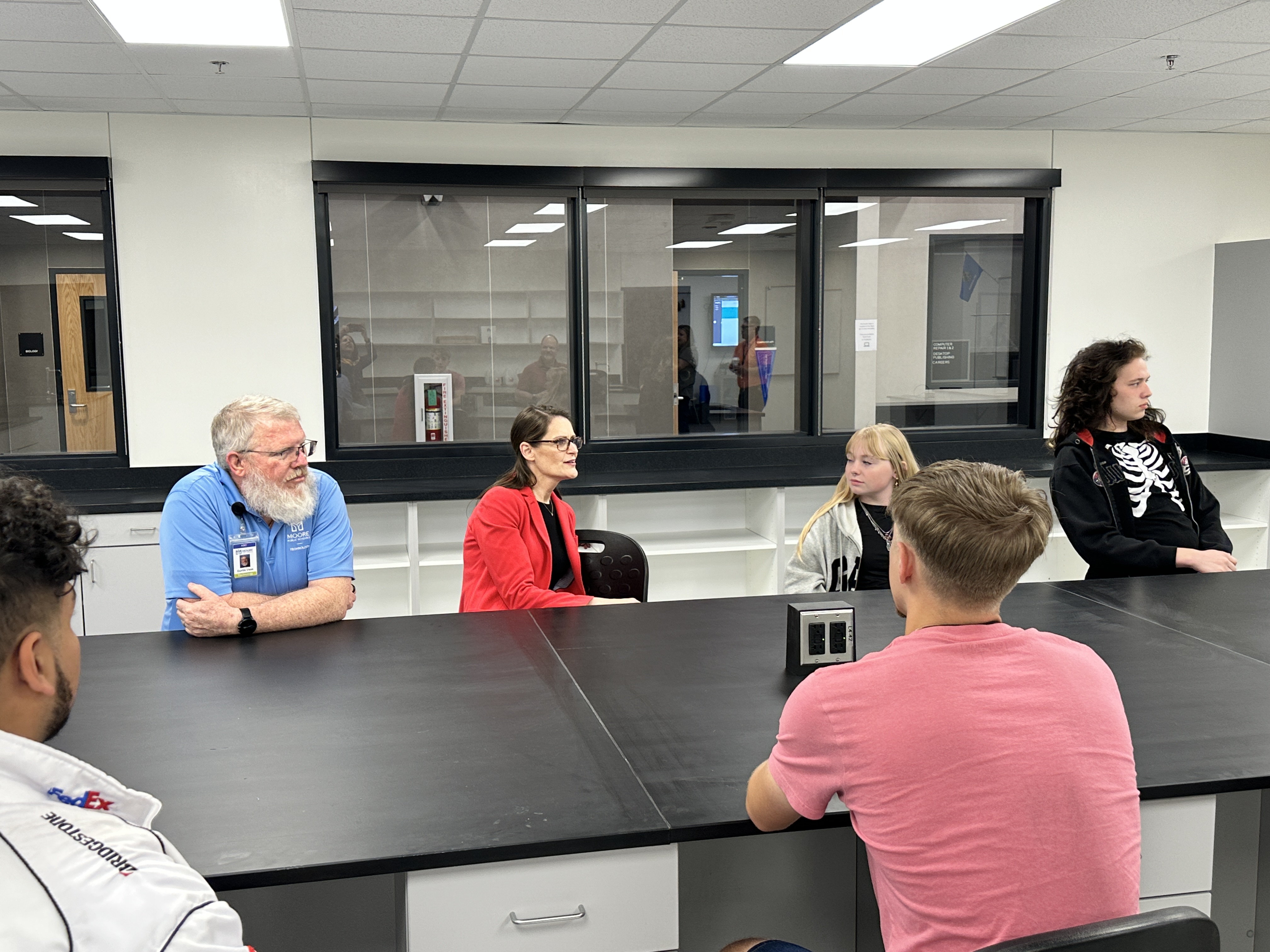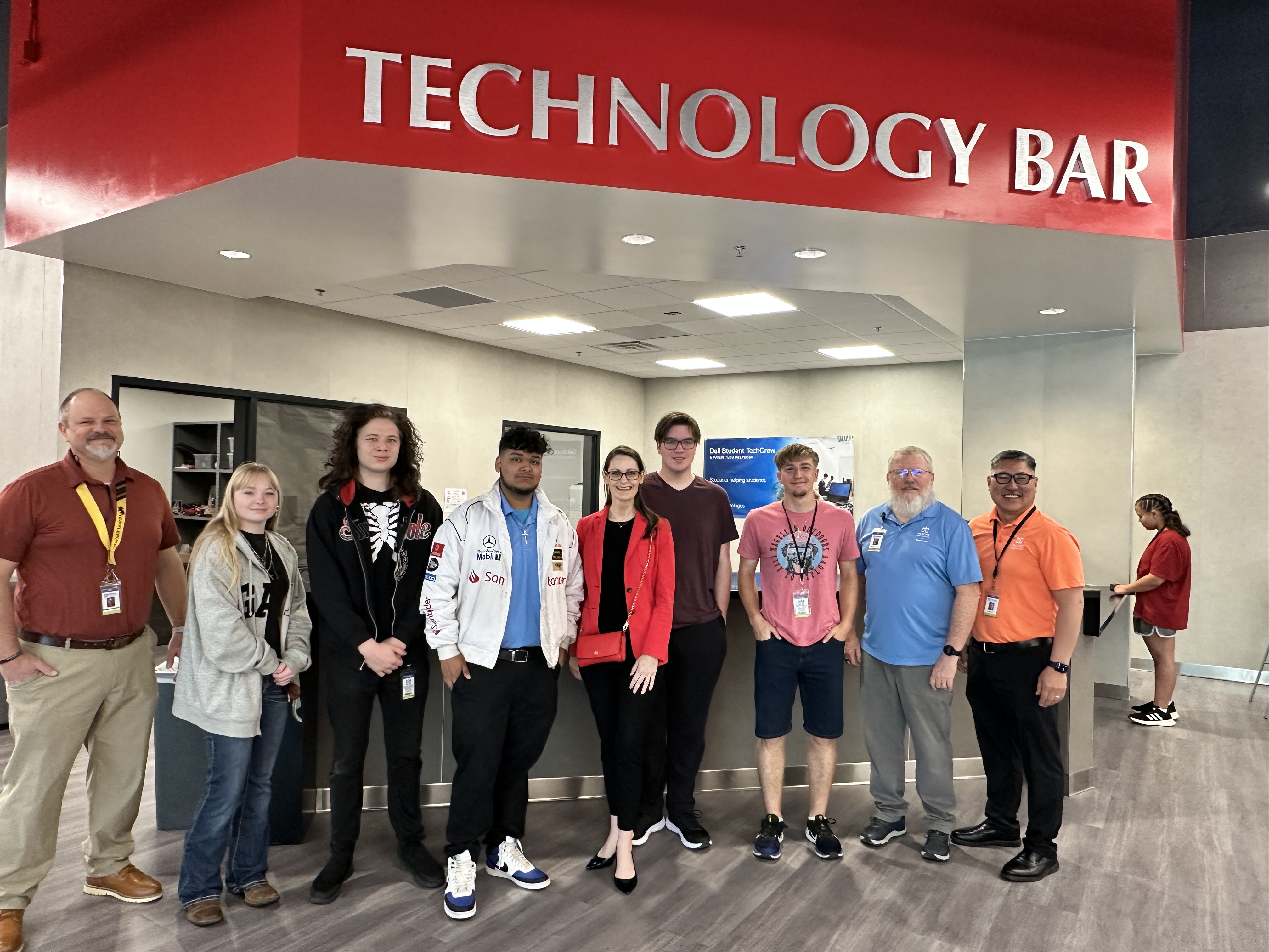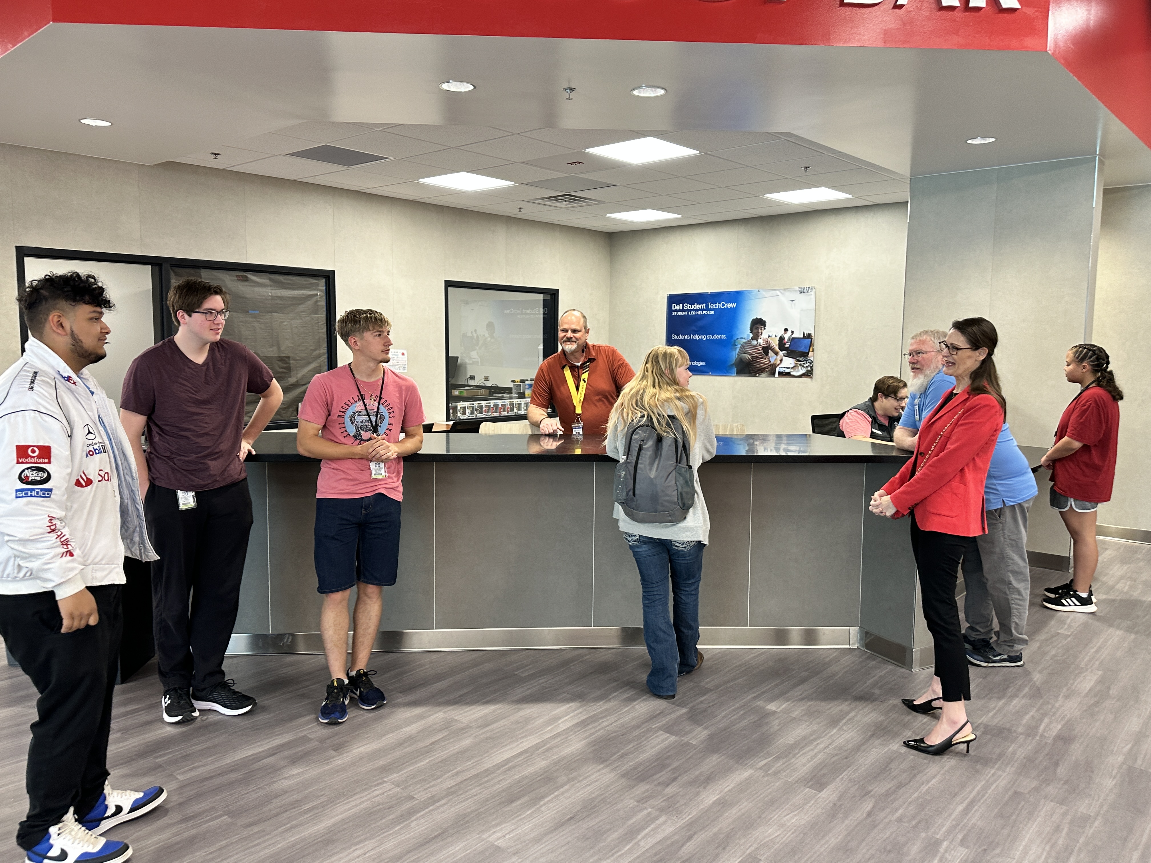Oklahoma Secretary of Education Nellie Tayloe Sanders visited Westmoore High School's Technology Bar and student interns last week to learn about their Dell Certification program and connect with the students on their learning styles and desire to work in the IT industry.