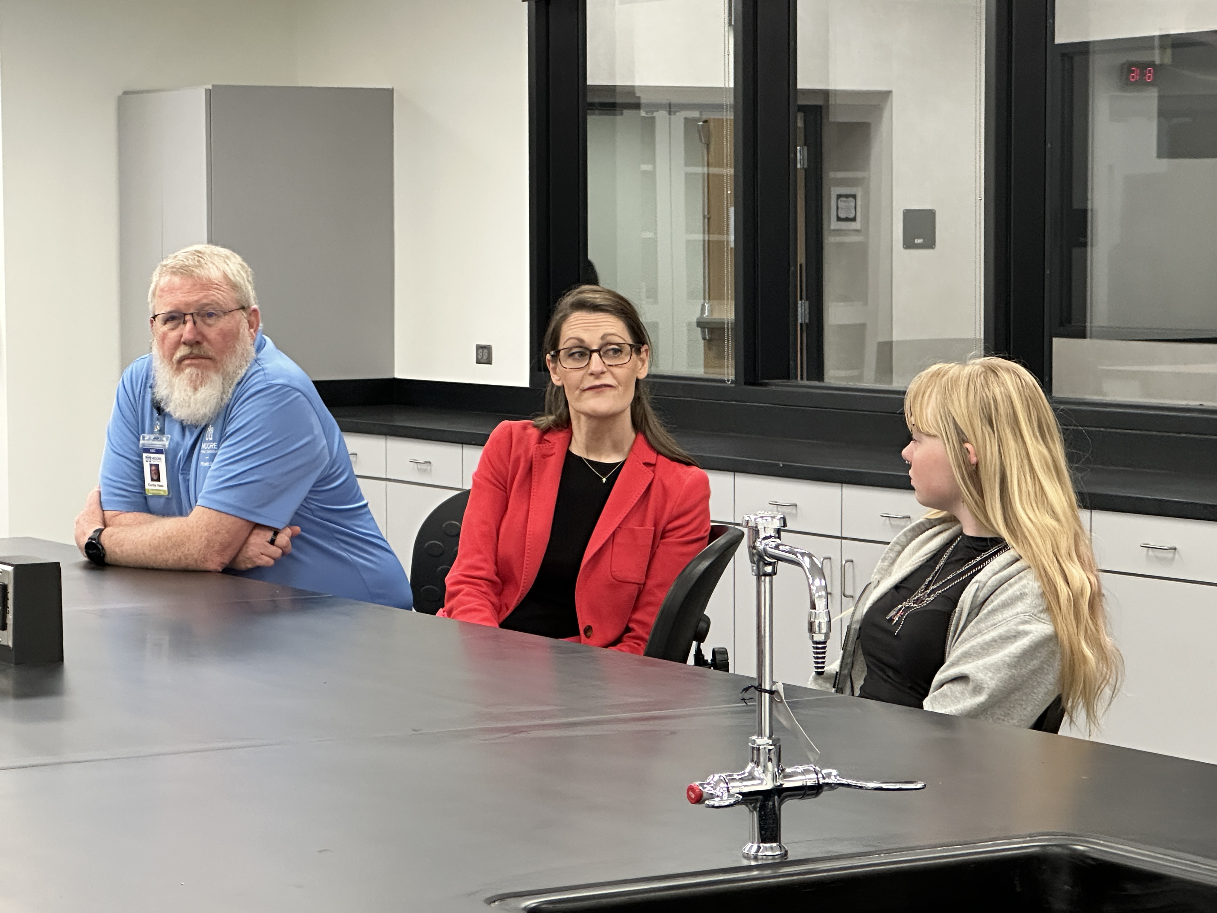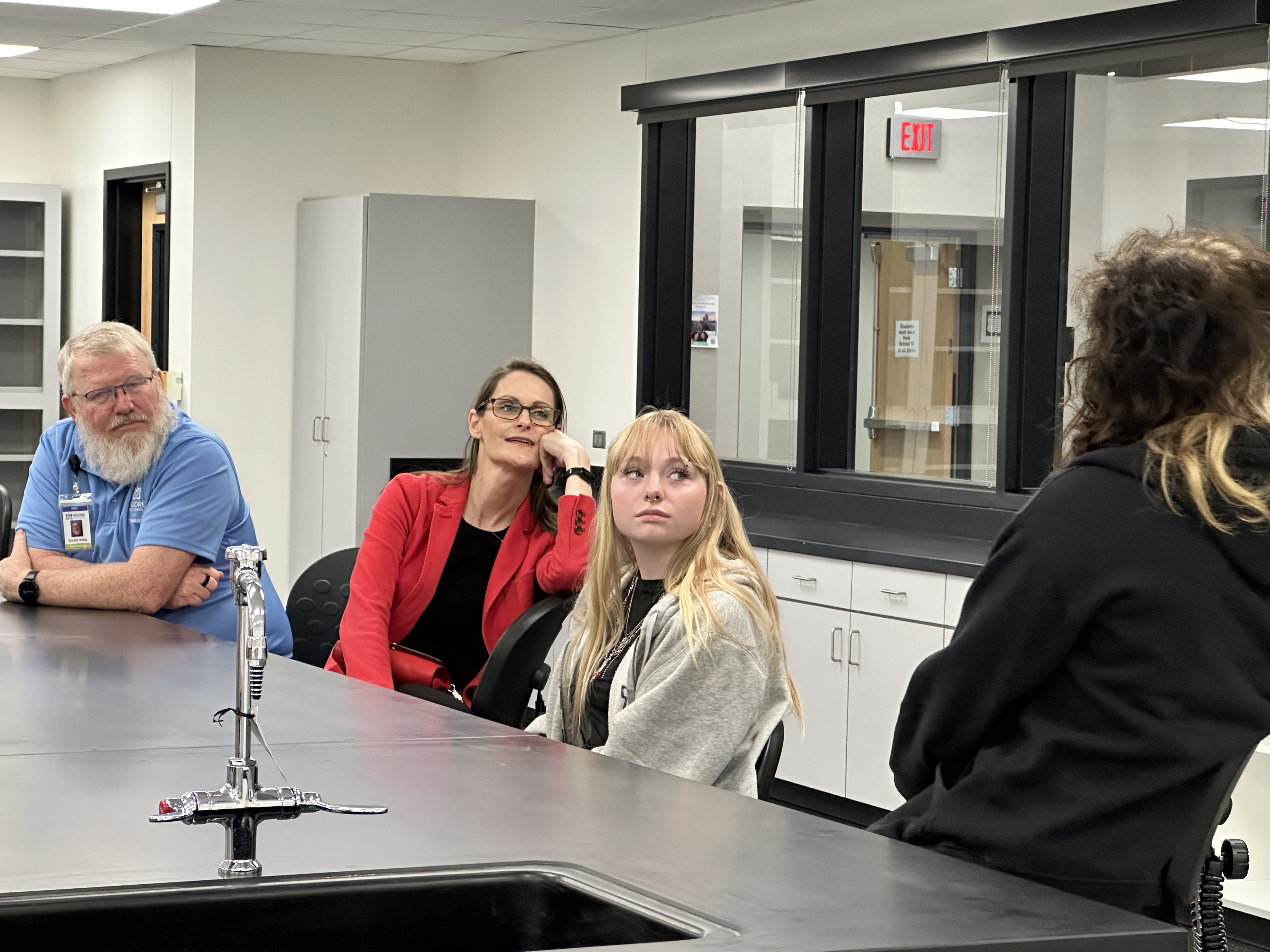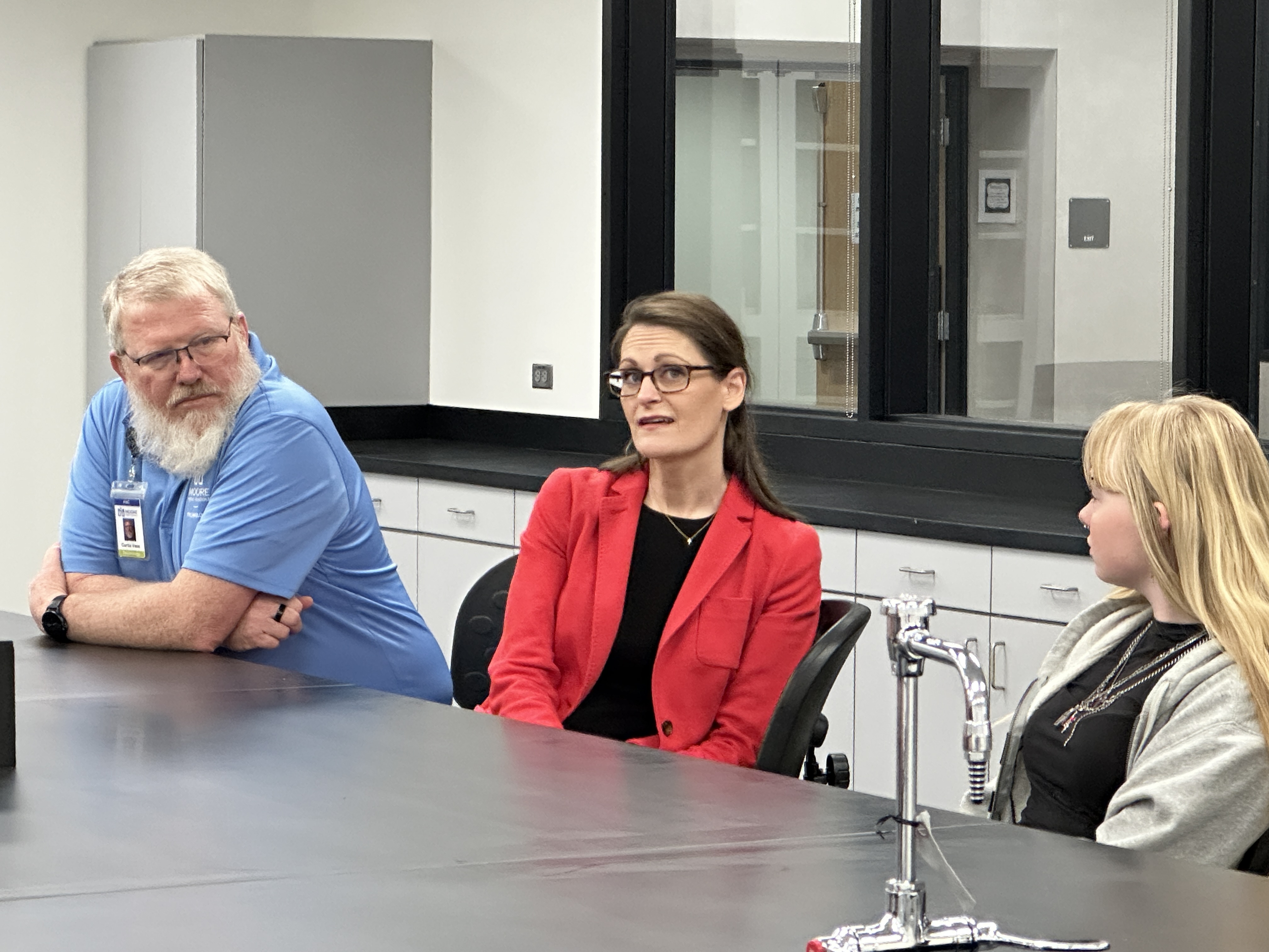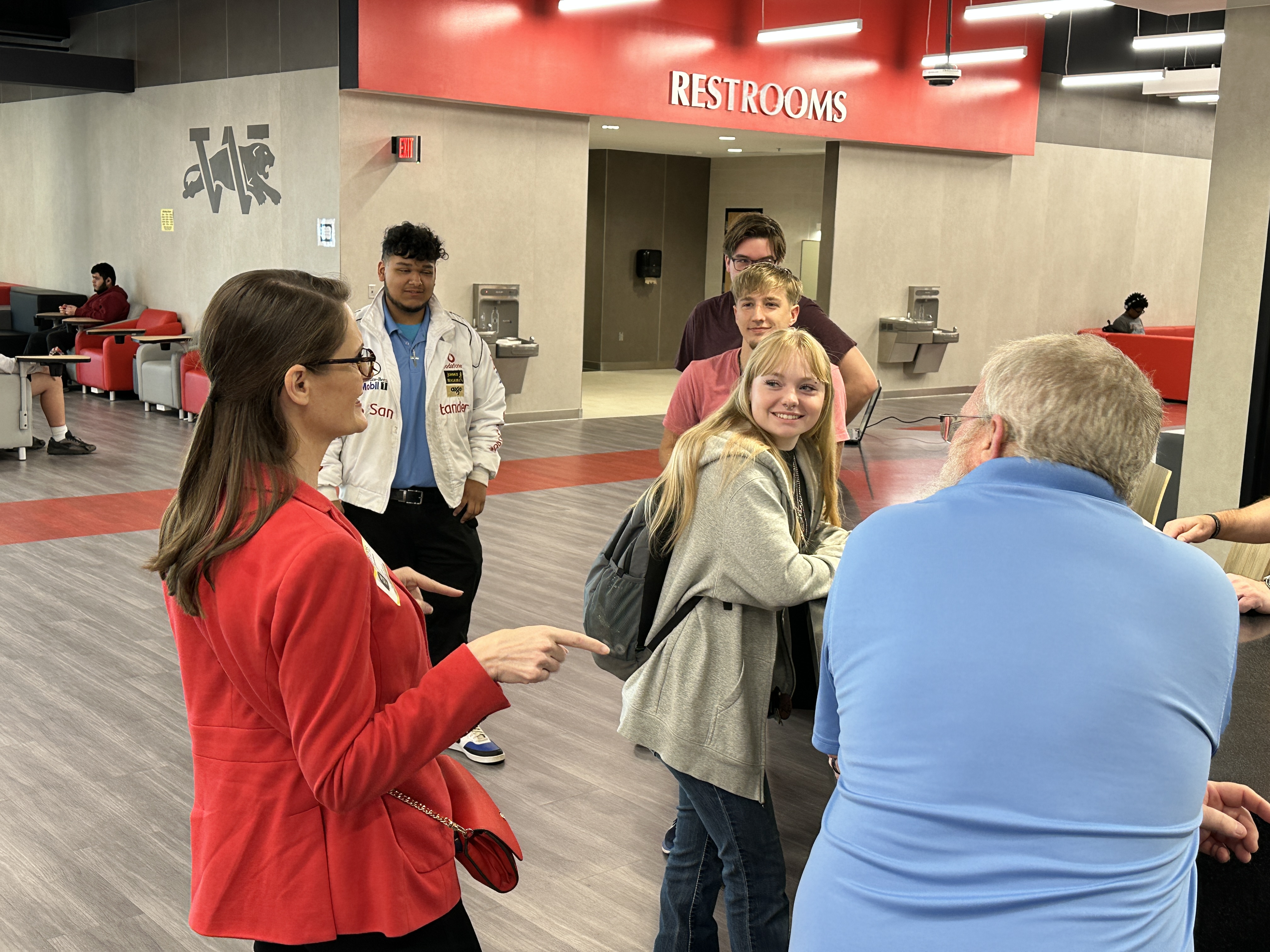 Oklahoma Secretary of Education Nellie Tayloe Sanders visited Westmoore High School's Technology Bar and student interns last week to learn about their Dell Certification program and connect with the students on their learning styles and desire to work in the IT industry.