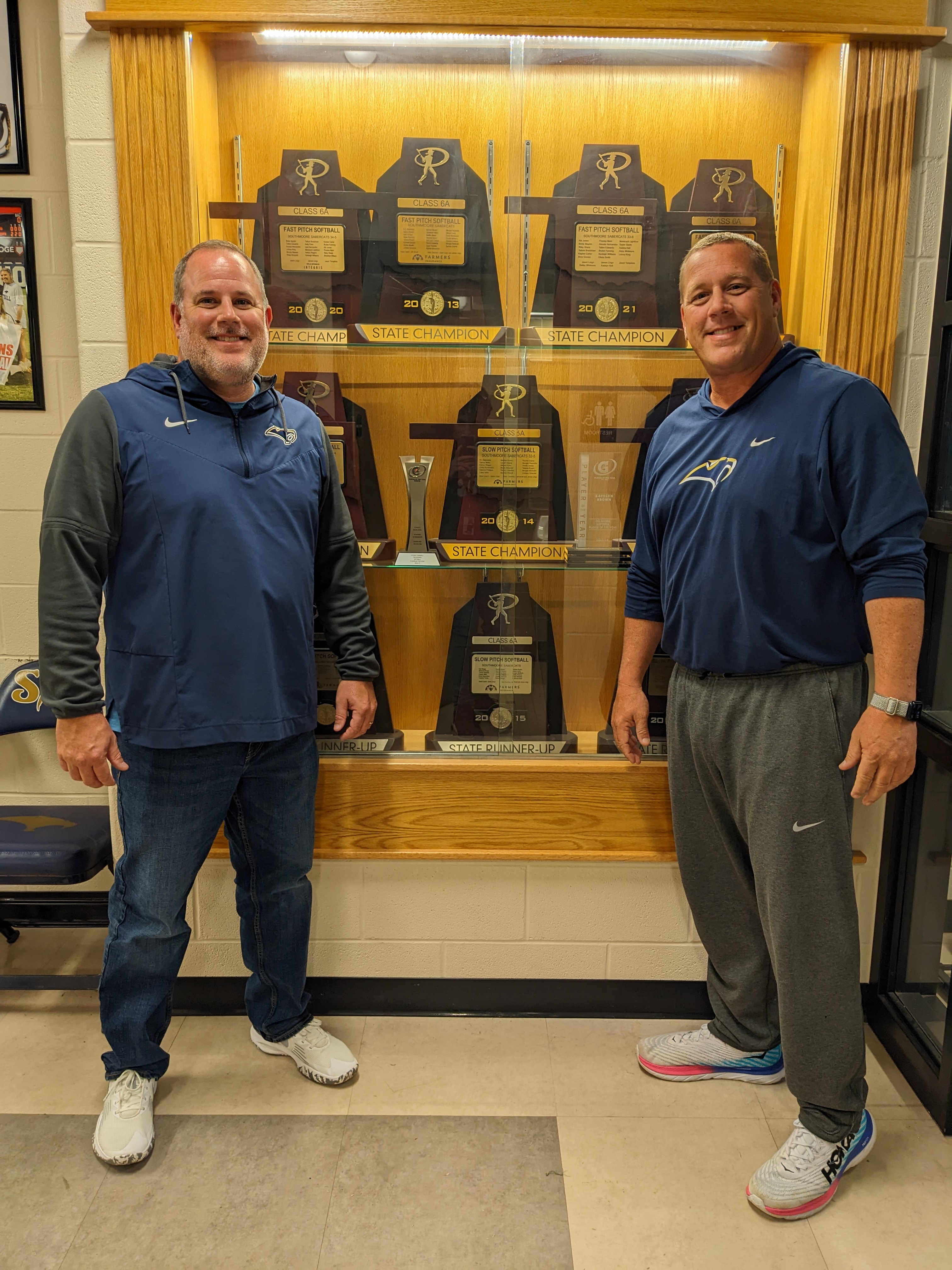 The brothers started at Southmoore when it was first opened in 2008. Jason teaches physical education classes and is the SHS assistant athletic facilitator and he is the fast-pitch head coach. James teaches American Studies and is the slow-pitch head coach. Neither thought they would be working alongside each other at work every day.