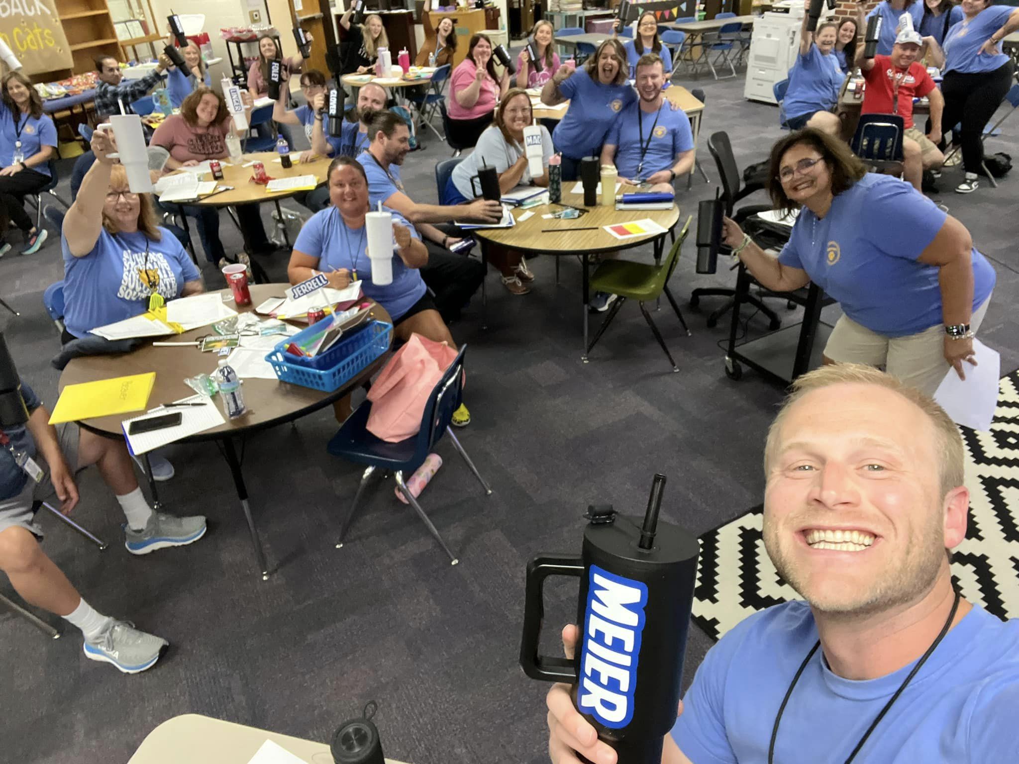 Meier and his Assistant Principal Trenda Purcell reached out to Moore-based drinkware company Simple Modern's CEO Mike Beckham to see if there was a partnership opportunity. Instead, they were overwhelmed with Beckham's generosity. Simple Modern donated stainless steel drinkware to the SGE teachers and staff for the first day of school, much to the delight of everyone.