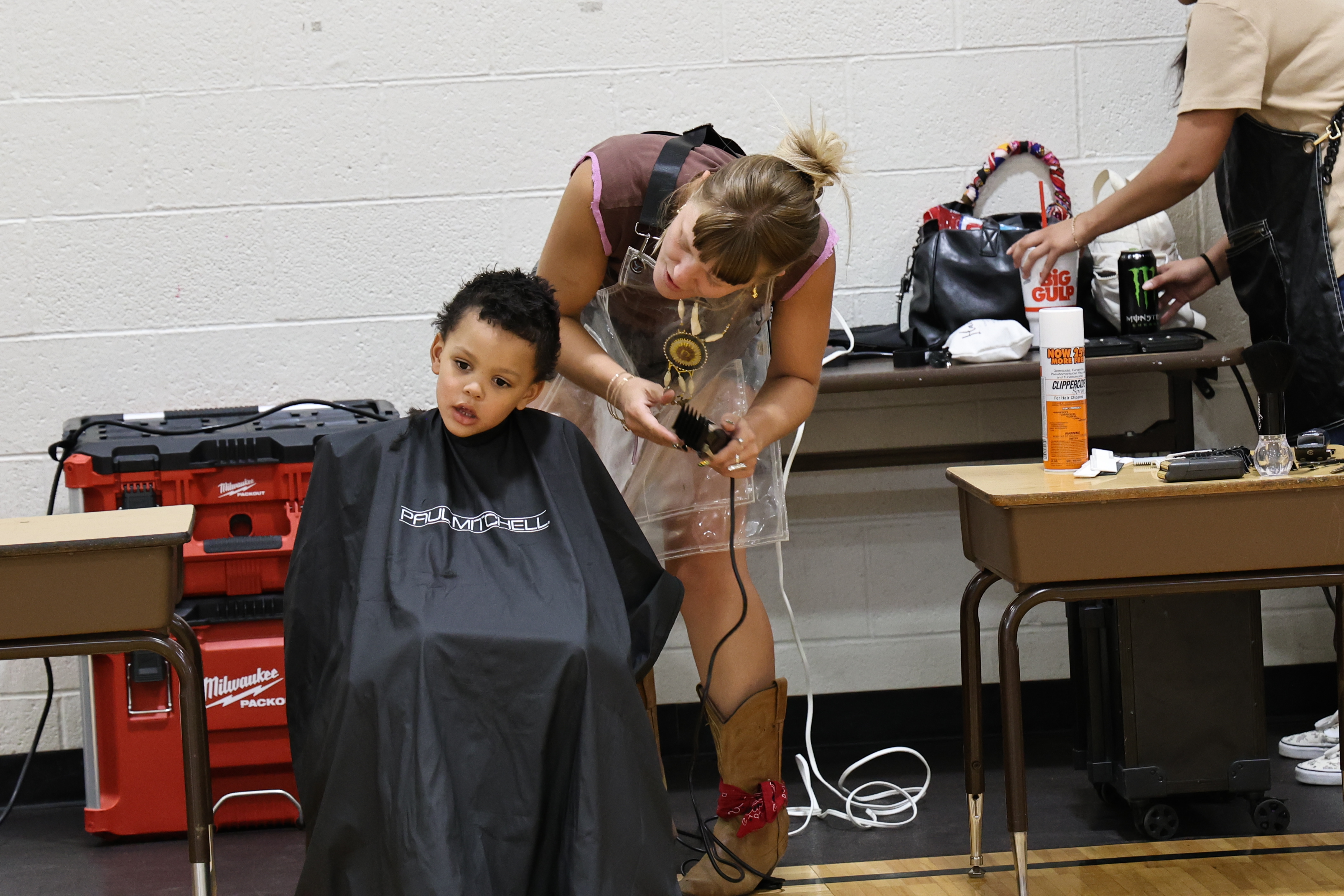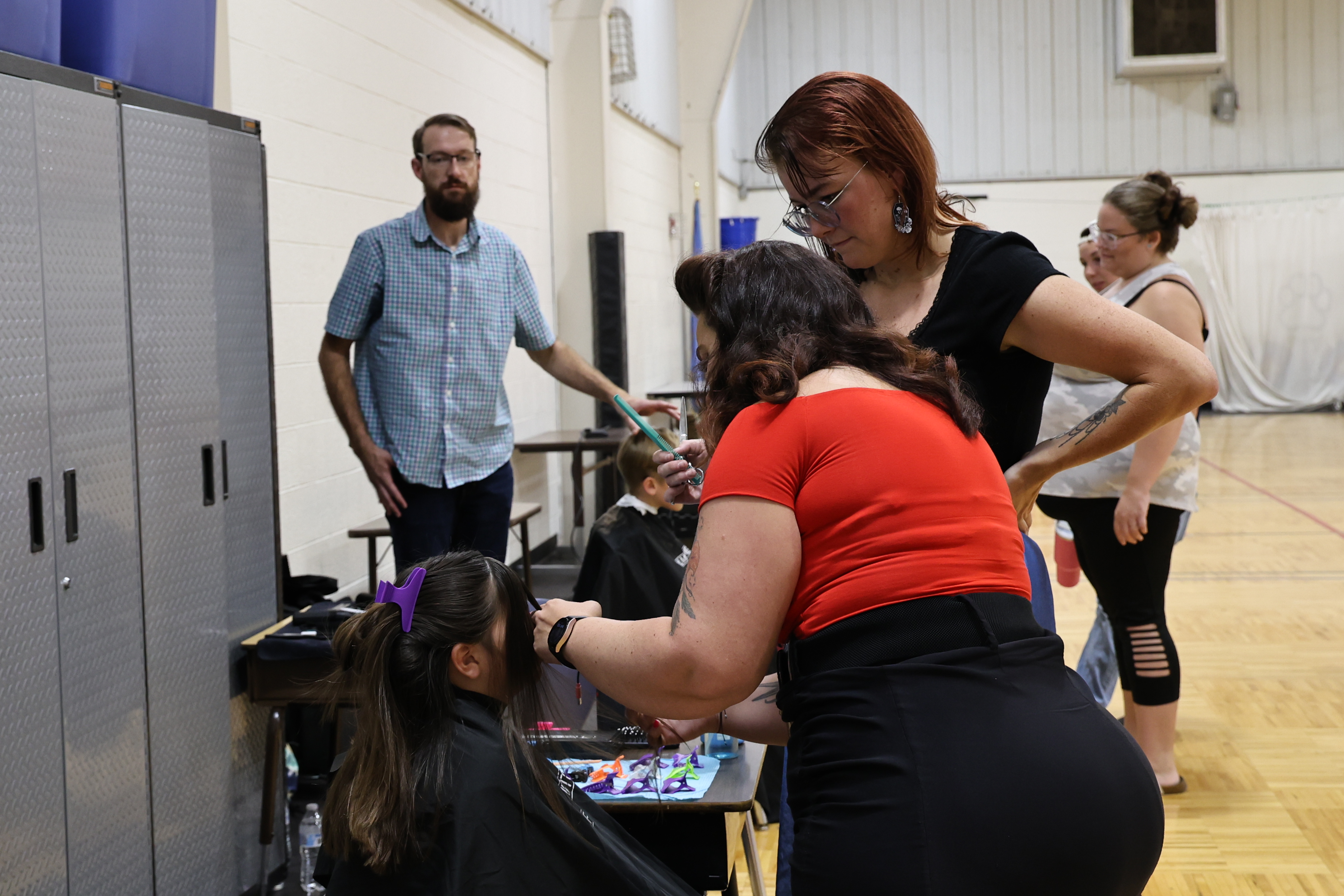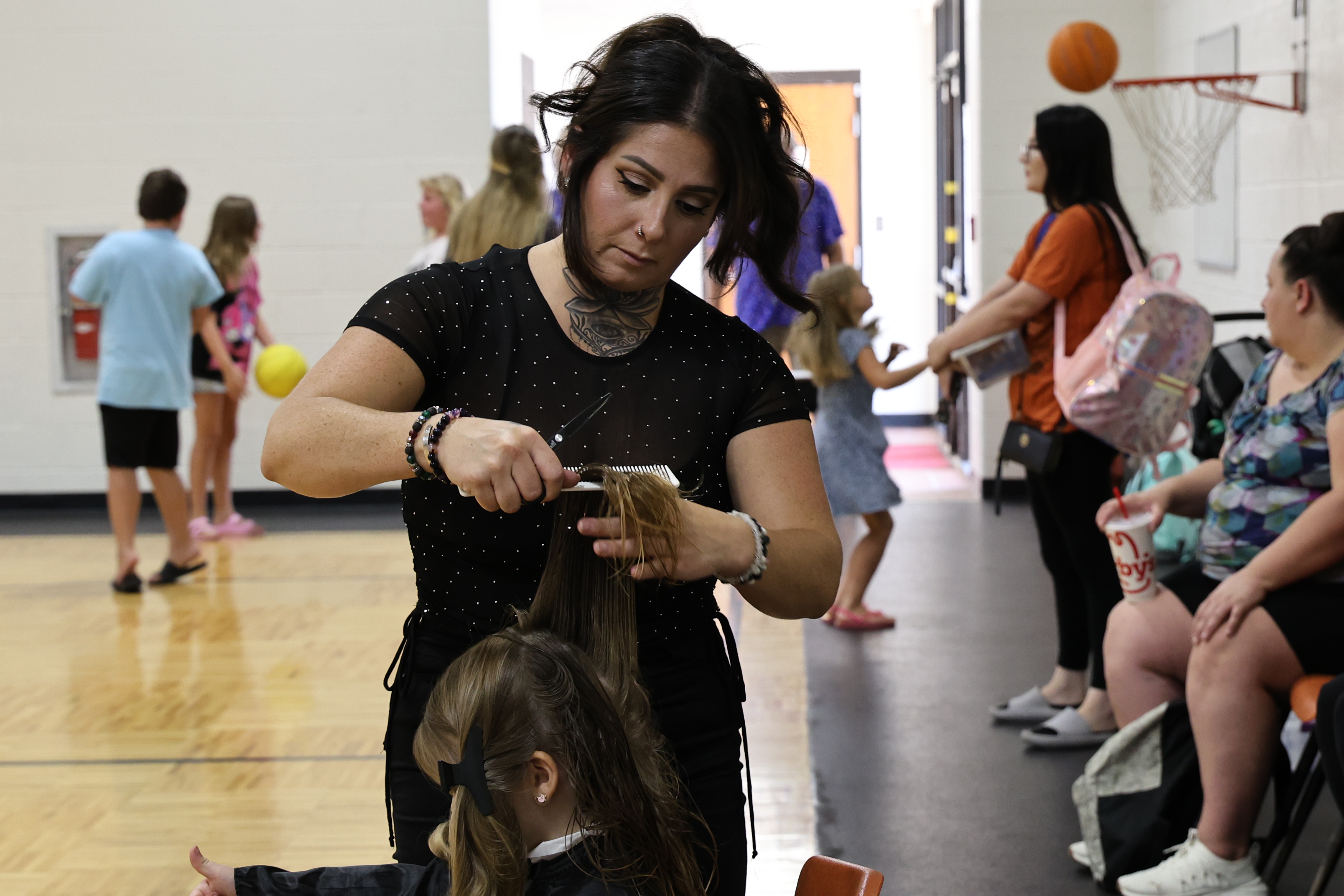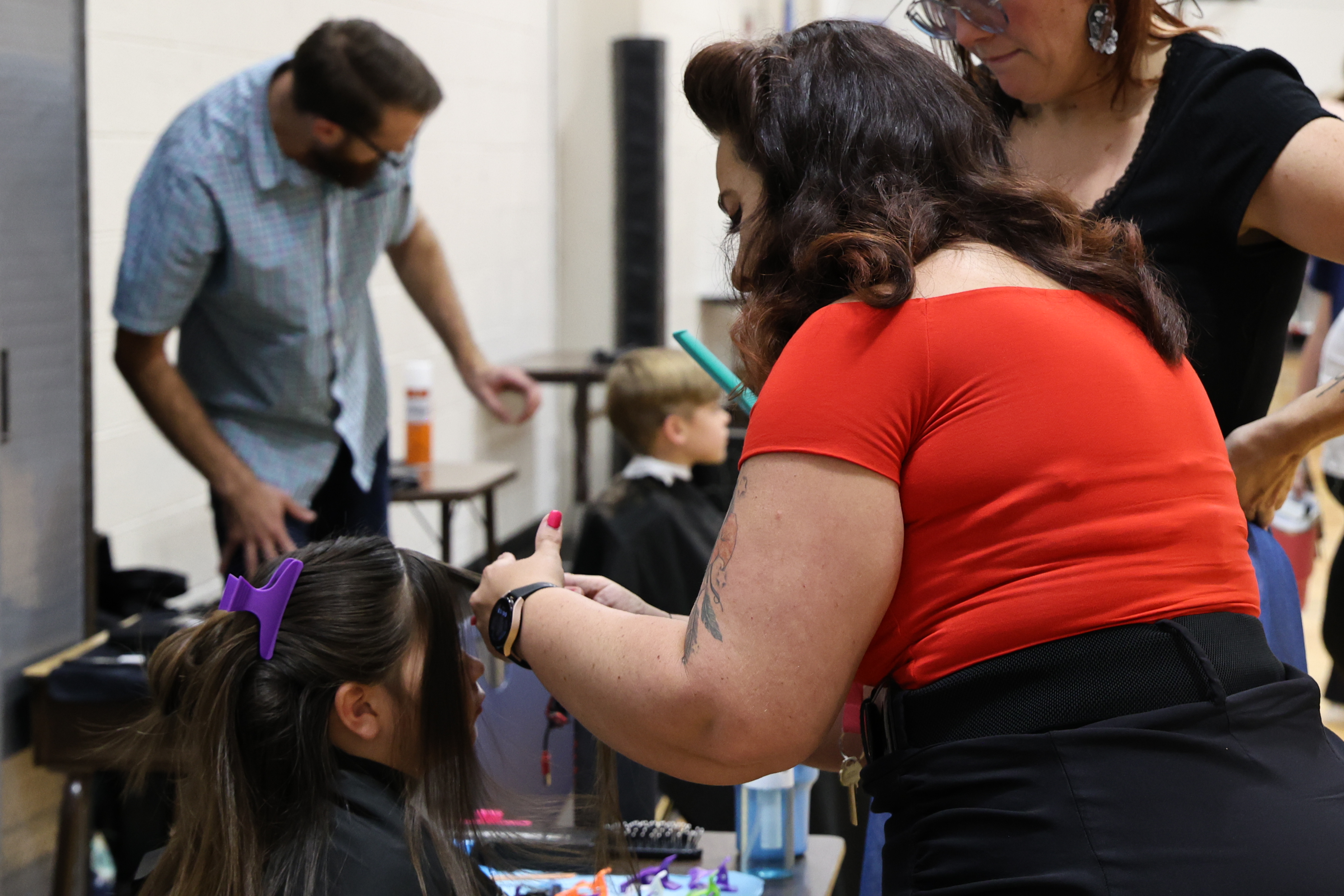 Separately, SGE Parent Teacher Association Pres. Maura Andrews reached out to the Paul Mitchell: The School in Norman. Barber Learning Leader Philis Kellert worked with Andrews to coordinate a group of cosmetology students to be on-site inside the SGE gym for free haircuts for students during Back to School Night. They had 37 students take advantage of the haircut event.