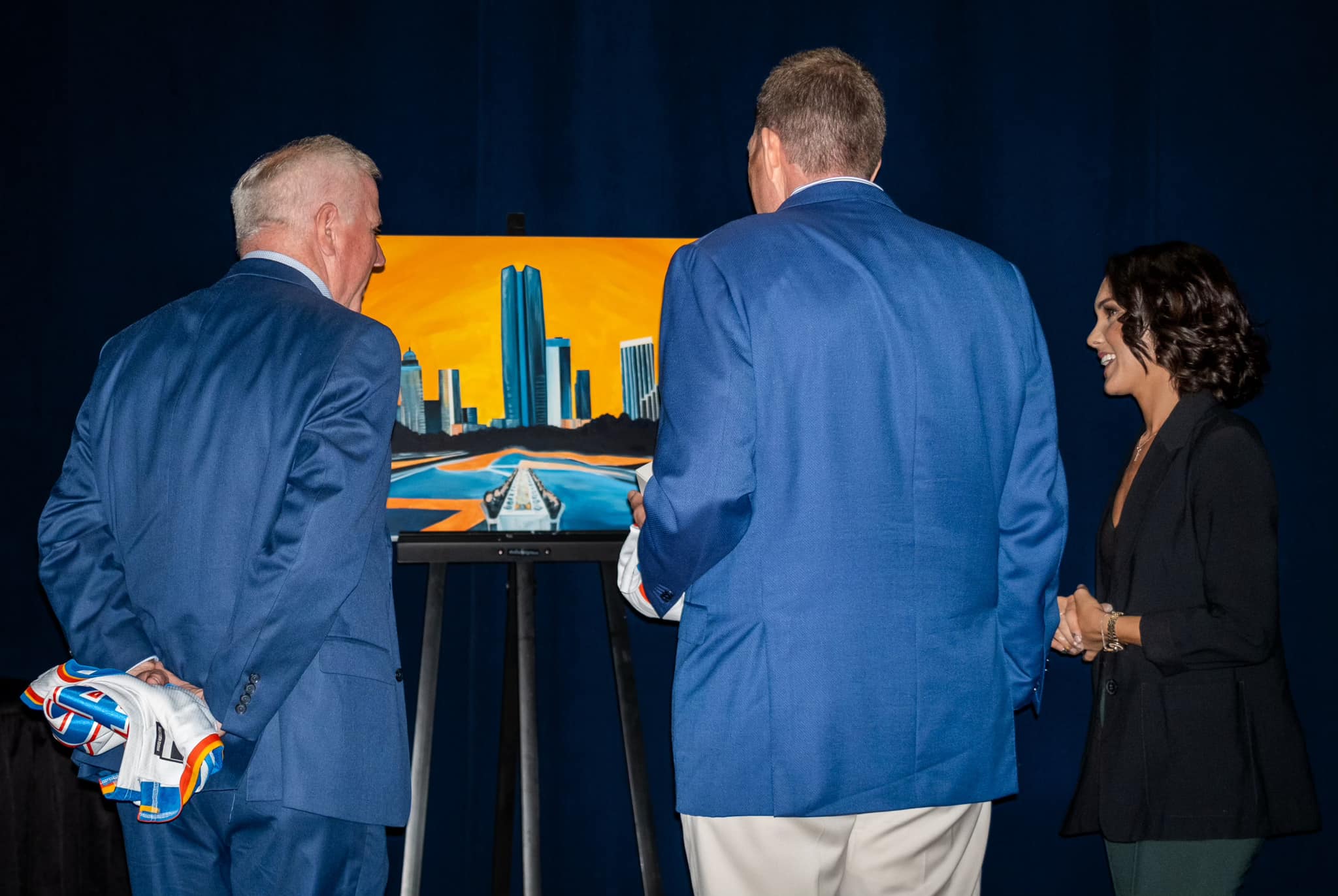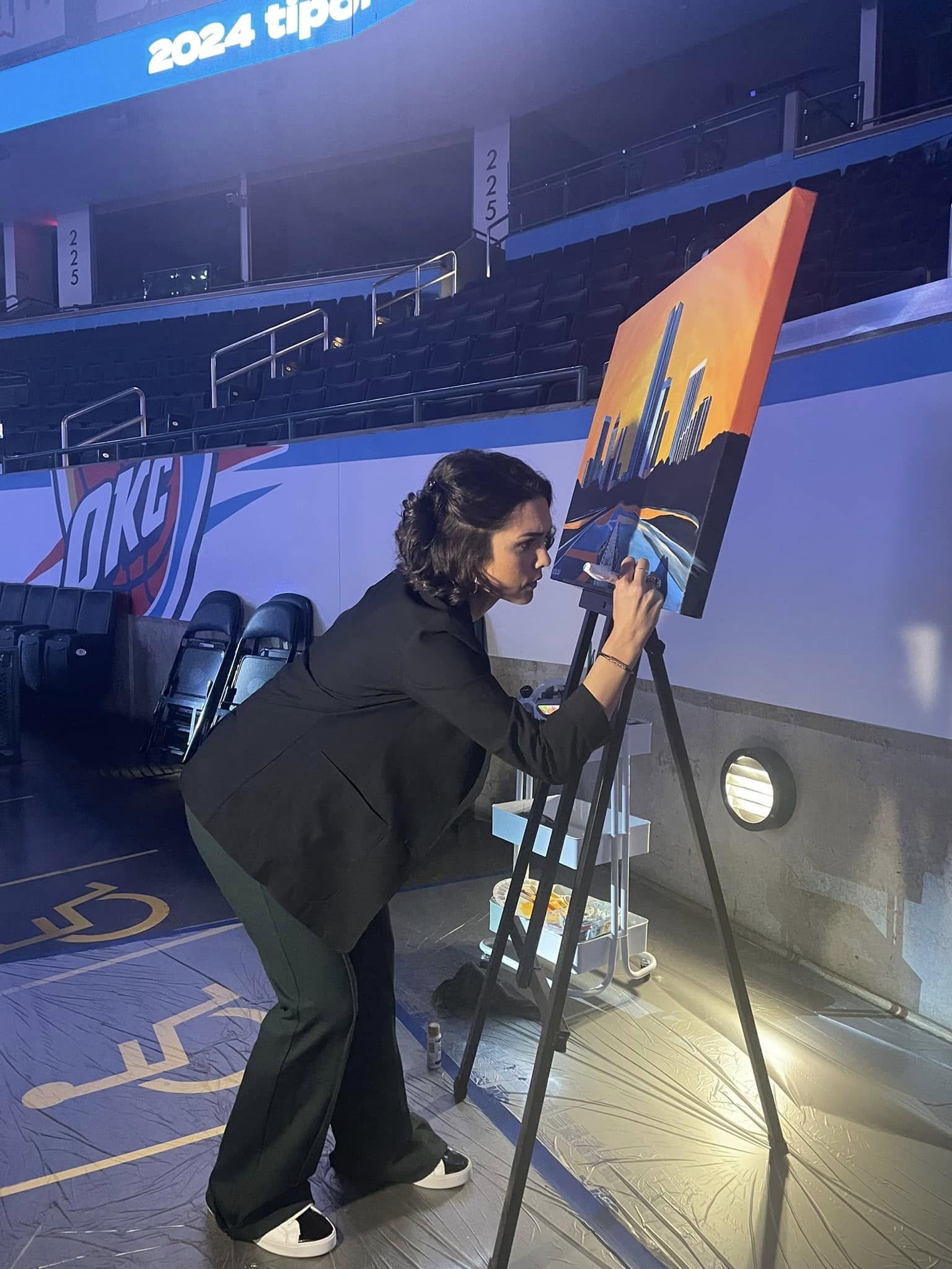 Last October, Clark was selected as one of 10 featured artists for the 2024-2025 OKC Thunder Artist Group. She participated in a private live painting with Professional Basketball Club Chairman Clay Bennett and OKC Thunder Executive VP and CAO Danny Barth.