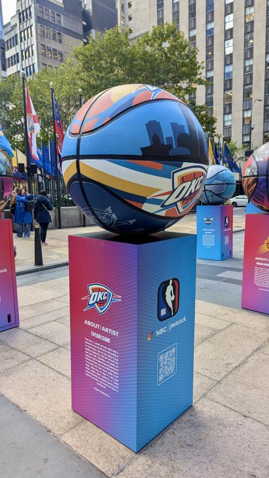 Westmoore High School 2012 graduate and local artist Taylor Clark earned the chance of a lifetime, with her original artwork on display in New York City in the NBA's Artists Ball Exhibit called "30 Rocks," at Rockefeller Plaza. The exhibit celebrates the NBA's return to NBC and runs from Oct. 16 through Oct. 21, which also happens to be the season opener game for the OKC Thunder.